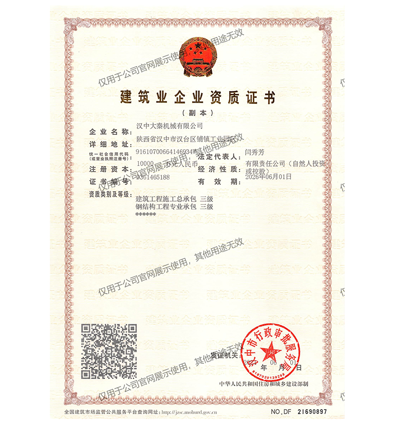 大秦索道 · 榮譽證書始終以產品質量和服務為本